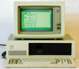 1981年8月12日推出该公司为世人所熟知的首台IBM PC。这台售价2880美元的IBM 5150的心脏是Intel的4.77MHz的8088处理器,16KB内存(可升级至256KB),采用低分辨率单色或彩色显示器;捆绑微软的BASIC以及后来被称为PC的『杀手级应用』的VisiCalc电算表软件;配置两个160kb单面软盘驱动器。