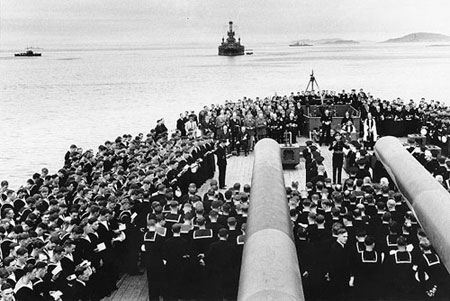 1941年8月12日,美国总统罗斯福和英国首相丘吉尔在『威尔士亲王』号上签署《大西洋宪章》
