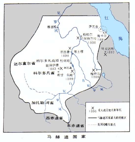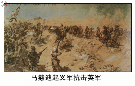 1881年8月12日,苏丹掀起了『马赫迪』大起义。『马赫迪』是伊斯兰教的救世主。苏丹的民族英雄穆罕默德·艾哈迈德在发动人民进行反英起义时,就把自己说成是『上帝定的神圣的领袖、众所期待的马赫迪』。英国在