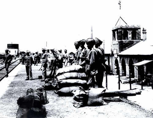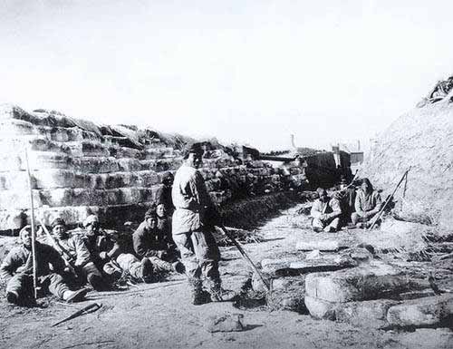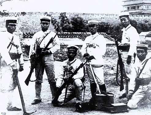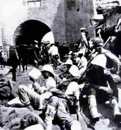 攻破天津海光门(也称南营门)后,联军中的英、日军士兵正做片刻喘息。