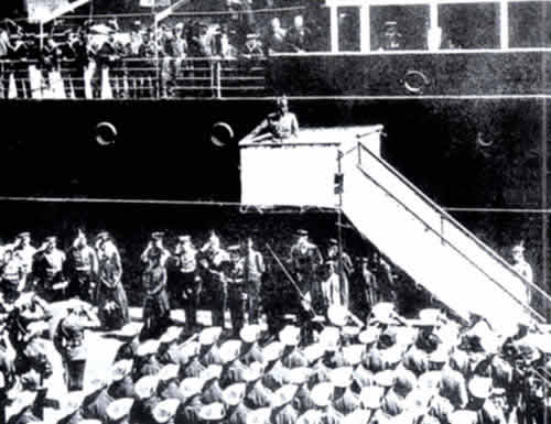 远赴中国参战的德国军队登舰前,威廉二世皇帝训话。