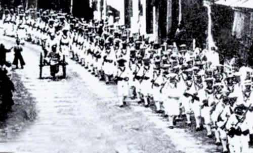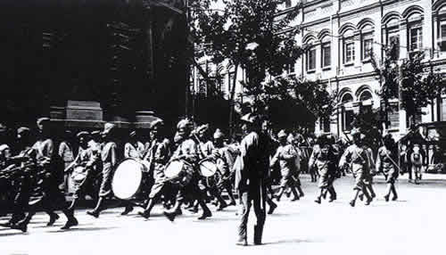 法国机枪小分队开进天津城。
