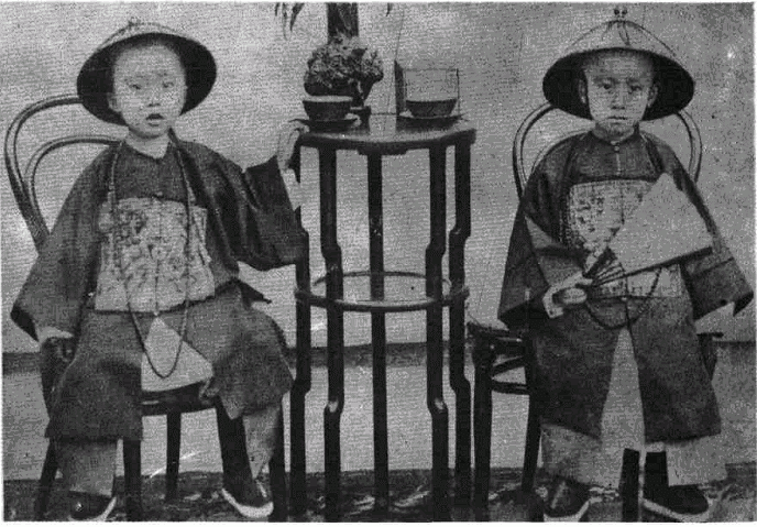 幼年的光绪皇帝和弟弟。光绪帝一生受到慈禧太后的掌控,未曾掌握实权。