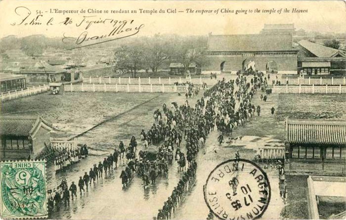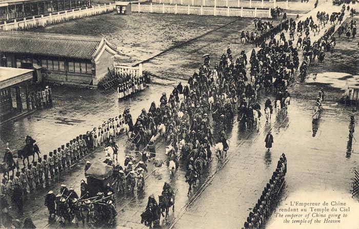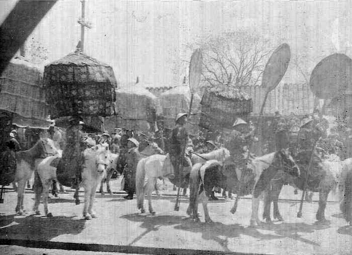 1905年,光绪出大清门前往天坛,远处是天安门。