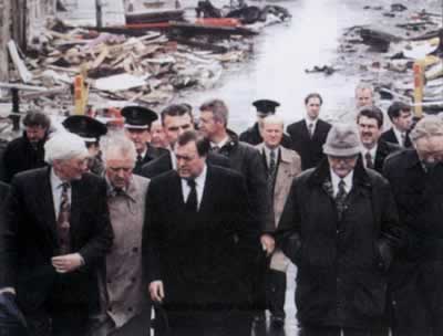 英国副首相贝理斯克(中)巡视灾区,谴责恐怖行动