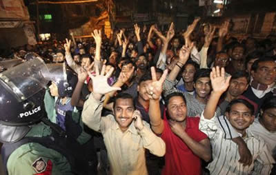 2010年1月28日凌晨,在位于孟加拉国首都达卡的中央监狱门前,人们听到杀害孟加拉国『国父』谢赫·穆吉布·拉赫曼的5名凶手被执行绞刑后欢呼。
