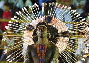 人口:1.696亿(2000年),占世界人口的2.8%,居拉美首位。其中白种人占54. 03%,黑白混血种人占39. 94%,黑种人占5. 39%,黄种人占0.46%,印第安人约占0. 16%。葡萄牙语为官方语言。71%的居民信奉天主教。 巴西『印第安人日』