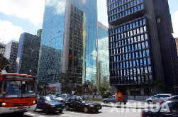 巴西第一大城市圣保罗市内的保利斯大街上高耸的金融机构大楼。圣保罗是巴西的金融、商业和制造业中心。