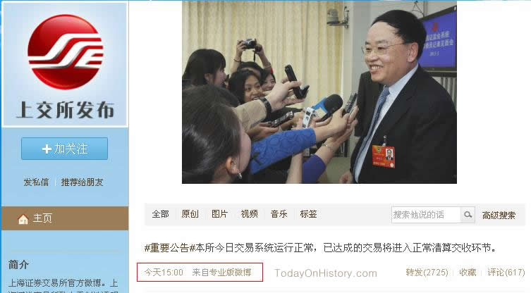 15:00 上交所宣布已达成的交易将进入正常清算交收环节。