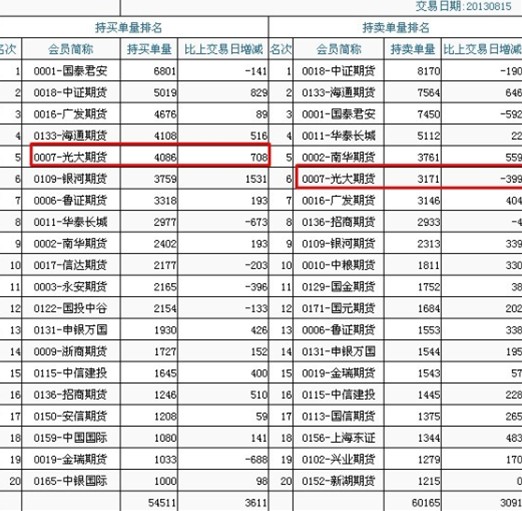 据中金所下午4点28分公布的数据显示,今日股指期货收盘后,光大期货方面在主力合约IF1309持有的空单量新增7023手,达到史无前例的10194手,名列所有期货公司空单持仓排名第一。