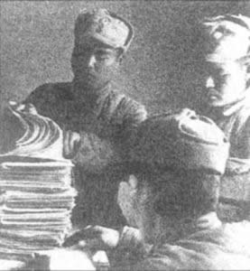 在华日人反战同盟的成员在编写、分发反战宣传品