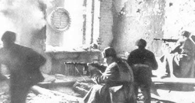 斯大林格勒巷战:苏军在萨多瓦亚车站抵抗斯大林格勒巷战:苏军在『街垒』工厂抵抗11月中下旬,苏军开始反攻,主要突击方向首先指向罗马尼亚第3集团军苏军滨海集团军的海军陆战旅德军被俘军官2500多名,其中将军24名&