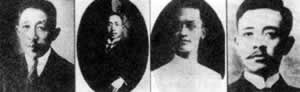 从左至右依次为:廖仲恺、朱执信、胡汉民、宋教仁