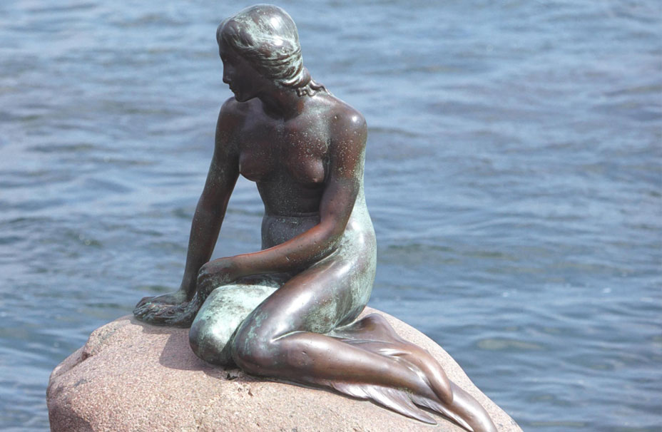 美人鱼是一座世界闻名的铜像,她位于丹麦哥本哈根市中心东北部的长堤公园(Langelinie)。远望这个人身鱼尾的美人鱼,她坐在一块巨大的花岗石上,恬静娴雅,悠闲自得;走近这座铜像,您看到的却是一个神情忧郁、冥思苦想的少女。铜像高约1.5米,基石直径约1.8米,是丹麦雕刻家爱德华•艾瑞克森(Edvard Eriksen)根据安徒生童话《海的女儿》铸塑的。