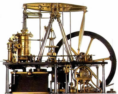 1736年1月19日瓦特生于苏格兰格拉斯哥附近,父亲是熟练的造船工人并拥有自己的船只与造船作坊,母亲出身于一个贵族家庭并受过良好的教育。17岁时母亲去世,瓦特到伦敦的一家仪表修理厂作了一年的徒工,1757年,他格拉斯哥大学里开设了一间小修理店,其中的一位教授,物理学家与化学家约瑟夫·布莱克更是成了瓦特的朋友与导师。在朋友罗宾逊教授的引导下,瓦特开始了对蒸汽机的实验。瓦特虽然只受过一年的机械制造训练,但却具有非凡的发明天才。他对牛考门机所做的改进非常重要,所以人们认为是他发明了第一台有实用价值的蒸汽机。瓦特所做的第一项重大革新就是增加一个独立的凝汽室,于1769年获得专利权。他还使蒸汽缸与外界绝缘,又于1782年发明了双动发动机。连同一些较小的革新一起,这些发明使蒸汽机的效率至少提高了四倍。实际上效率的提高意味着一台华而不实的装置与一台有巨大工业价值的机械之间的差别。
