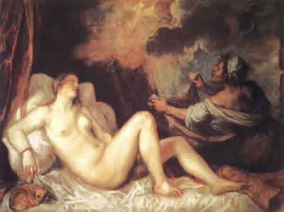 4、达娜依接纳金雨 提香 1553-1554年 马德里普拉多博物馆藏