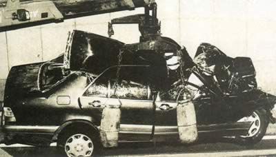 被撞坏的戴安娜乘坐的奔驰S280型汽车