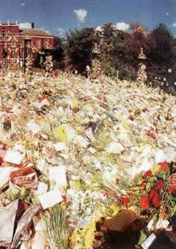 戴妃去世后,她的住所肯辛顿宫前摆满了哀悼者敬献的鲜花
