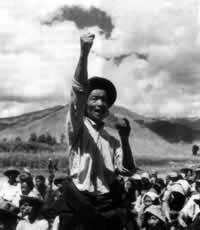 张热庄园的农民载歌载舞,庆祝民主改革的胜利。