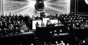 战争爆发,希特勒在作演说。