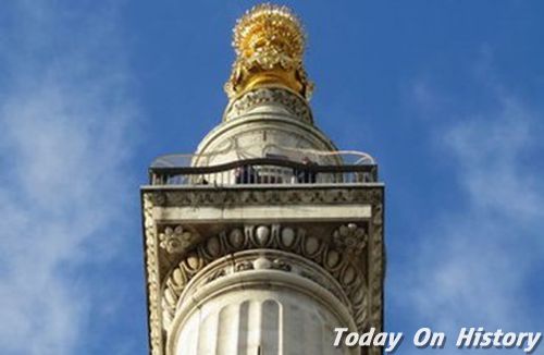 1666年9月2日星期日凌晨1点左右,伦敦普丁巷(Pudding Lane)有一间面包铺失火。一阵大风将火焰很快吹过几条全是木屋的狭窄街道,然後又进入了泰晤士河北岸的一些仓库里。大火延烧了整个城市,连续烧了4天,包括87间教堂、44家公司以及13000间民房尽被焚毁,欧洲最大城市伦敦大约六分之一的建筑被烧毁。後来起火点普丁巷附近立了一个纪念碑,高61.5公尺,共有311阶,顶端为火焰饰围绕的圆球,是英国天文学家和建筑师克里斯多佛·雷恩(Sir Christopher Wren)所设计,重建的工作由雷恩主导,54间教堂中有51间是他重新设计的,包括著名的圣保罗大教堂。