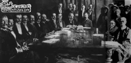 1901年9月7日,由德、奥、匈、比、西、法、英、意、美、日、荷、俄等国公使组成的外交团,在团长葛络干主持下,于11时在西班牙使馆与中国全权大臣奕匡和李鸿章举行会谈,签署和谈最后议定书,仪式于11时30分结束。