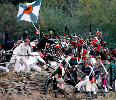 1812年9月7日,在莫斯科西面120公里左右的博罗季诺地方,曾发生过一场空前激烈的战争。战争的双方,一方是著名的法国军事家拿破仑领导的法军,另一方是俄国著名的军事家库图佐夫率领的俄国军。战斗十分残酷,仅一天时间,法军伤亡5万余人,俄国伤亡4.4万余人。历史上通称这场战争叫『博罗季诺决战』。