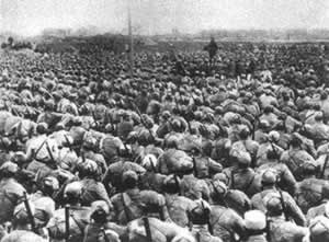 图:新四军陈毅代军长(前中)和一部分干部合影