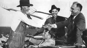 1933年1月20日,美国第32任总统罗斯福就职。具有超凡魅力的纽约州长弗兰克林·德拉诺·罗斯福(1882-1945)在11月以横扫一切之势在选举中大获全胜。这是美国选举史上占压倒优势的总统竞选之一。他的对手