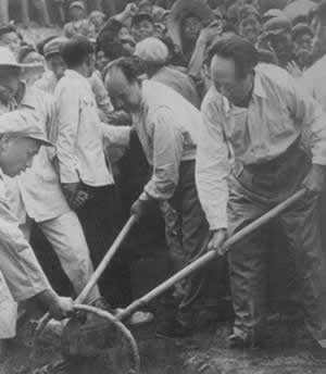 1958年5月25日,毛泽东带领出席中共八届二次会议的全体中央委员到北京十三陵水库工地劳动