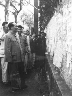 1957年10月,毛泽东在上海国棉一厂看大字报,了解情况