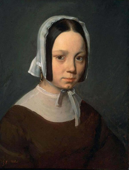 《米勒自画像》让·弗朗索瓦·米勒(1814-1875年),出生在诺曼底省的一个农民家庭,青年时代种过田。23岁时到巴黎师从于画家德拉罗什,画室里的同学都瞧不起他,说他是『土气的山里人』。老师也看不惯