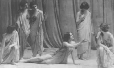 沉迷于伊莎贝拉·邓肯式的希腊舞蹈和身体律动相结合体育运动中的女性们。