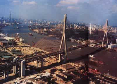 杨浦大桥世界第一斜拉桥--杨浦大桥,于1991年4月29日动工,1993年9月15日建成,历时仅2年5个月。大桥全长7658米,其中主桥1172米,中孔跨度602米,两岸桥塔高208米,为倒『Y』钻石型,桥塔两侧各有32对共256根鹅黄色
