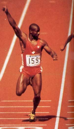 刘易斯同本-约翰逊的金牌之争成为本届奥运会主旋律的最强音符,一位试图成为奥运史上第一个蝉联100米跑冠军的运动员,一个则力图保住世界『第一飞人』的称号。9月24日下午1时半,在一阵快门的咔嚓声和一片山呼海啸般的呐喊声中,约翰逊以47步跑完全程,创造了9秒79的世界纪录,刘易斯以9秒92屈居亚军。约翰逊一下子成为汉城赛场的头号英雄。但3天之后,百米神话变为轰动世界的丑闻:约翰逊因尿检呈阳性而受到取消冠军资格和禁赛2年的处罚,他所创造的世界纪录也被取消。刘易斯成为蝉联奥运会百米冠军的第一人。