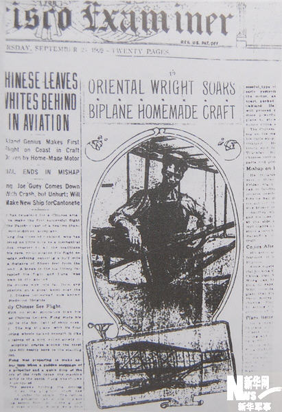 1909年9月23日,美国旧金山《旧金山观察者报》以头版位置报道了冯如制造飞机和试飞的经过。