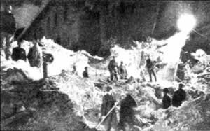 志愿者在清理被雪崩掩埋的公路1951年1月21日,异常猛烈而持久的大雪造成了阿尔卑斯山的巨大雪崩。在奥地利山区,至少有329人因此丧命。30个城市和乡村的大约45000人连续几天与外界隔绝。蒂罗尔的省会因斯布鲁克,被