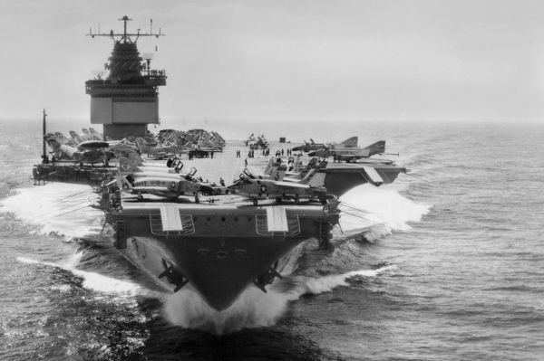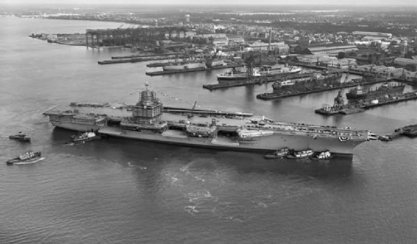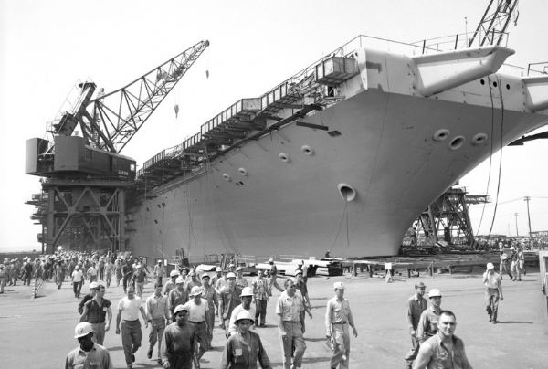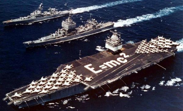 1960年9月24日,美国企业号航空母舰完工下水,是世界第一艘核动力航空母舰,迄今为止仍是美国海军的主力之一,预定2012年除役,2015年由福特级核动力航空母舰取代。排水量85600吨,满载排水量93970吨,乘员4800人,舰载机90架,造价为4亿5130万美金(1960年物价)。