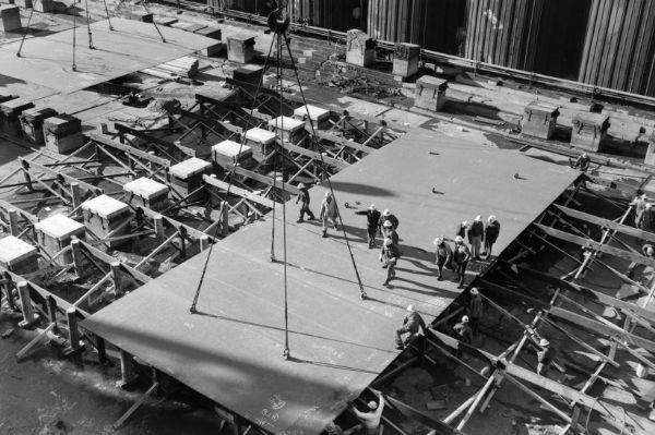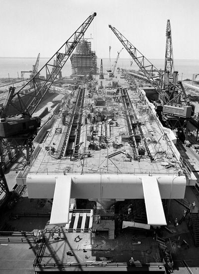 1960年9月6日,独特的圆顶舰岛吊装
