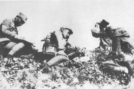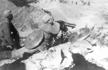 平型关战斗中第一一五师某部的机枪阵地1937年9月25日,八路军于平型关首战告捷。为配合第二战区友军防守平型关至茹越口和雁门关的内长城一线,八路军总部令第一一五师进至平型关以西之大营镇待机。林彪、聂荣臻等决
