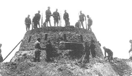 国民党军队在中央革命根据地边沿修筑碉堡1933年9月25日,蒋介石集中了100万军队,200架飞机,向各红色根据地发动第五次军事『围剿』。此次用于进攻中央苏区的兵力达50万,这些兵力分成四路:北路以顾祝同为总指挥,