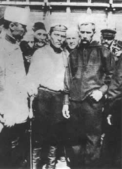 戈邦神父率领一批群众准备向沙皇递交请愿书1905年1月22日(俄历1月9日)是星期日,帷幕在圣彼得堡10万名工人平静的游行中拉开。工人们和他们的家属向沙皇请愿以改善生活条件。可这一天的帷幕却是在极度恐怖中降下的