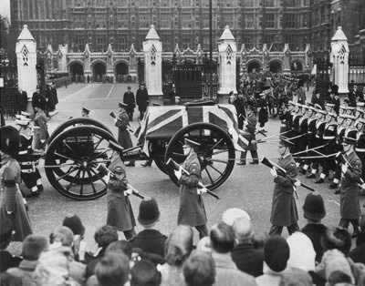 1965年1月24日。温斯顿-丘吉尔逝世,终年90岁。在伦敦举行了有110个国家代表参加的庄重的国葬仪式。之后,温斯顿爵士的遗体葬在布莱尼姆皇宫他家祖居附近的一个小小墓地里。人们向这位20世纪顶天立地的政治家表示哀