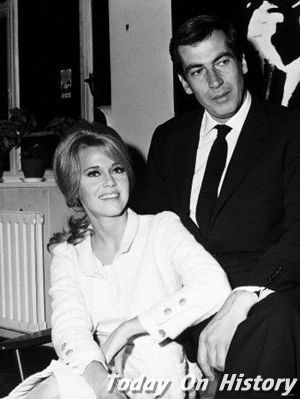 简·方达和丈夫罗杰·瓦迪姆1928年1月26日,法国著名电影导演罗杰·瓦迪姆出生。代表作《上帝创造女人》。法国导演兼美女收藏家,原为舞台演员,兼任记者和编剧。罗杰·瓦迪姆