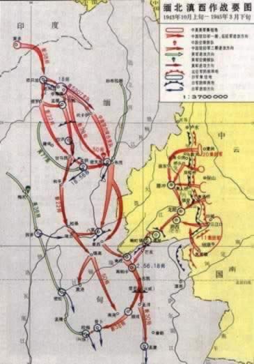 驻印军在空军支援下向缅北挺进1945年1月27日,中国远征军和中国驻印军在缅甸芒友会师,打通了中印缅公路。1943年8月,魁北克国际会议决定向缅北日军发动进攻,军事行动由中国驻印军和中国远征军承担。驻印军总指挥史