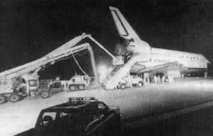 『发现』号航天飞机1999年在卡纳维拉尔角的肯尼迪航天中心,结束了当时8天的太空之旅 1995年2月3日,因技术问题推迟发射一天的美国『发现』号航天飞机终于从佛罗里达州卡纳维拉尔角的肯尼迪航天中心升空。2月6日下午,发现号航天飞机经过三天半的追逐,终于在距地面395公里的空间轨道上赶上了俄罗斯和平号轨道空间站,基本上按计划实现了两国航天飞行器械的历史性会合。这是自1975年美国阿波罗飞船与前苏联联盟号飞船实现首次对接后,美俄航天飞行器的第二次空间会合。这次太空飞行历时8天,航程560万公里。由5名美国宇航员和1名俄罗斯宇航员组成的乘员组,按计划成功地完成了航天飞机与俄罗斯『和平号』轨道空间站的会合,2月11日晨顺利返回地面。这次会合标志着美俄两国空间合作的新起点,也表明国际空间合作走向了新的里程。