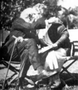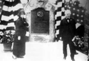 爱迪生与他的第二位妻子玛依娜在纪念碑前