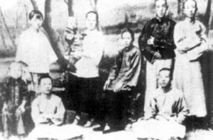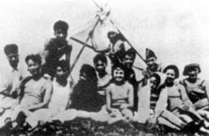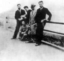 聂耳(左一〕与张鹤等友人在东京隅田公园