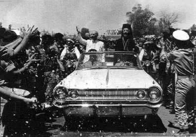 即使与希腊统一是马卡里奥斯大主教和『埃奥卡』运动一直为之斗争的目标,马克里奥斯还是接受了提出的解决办法,3月1日,在流亡3年后回到尼科西亚,下图为他与『埃奥卡』的格里瓦斯上校在一起。塞浦路斯宣布举行大选,马卡里奥斯在12月成为这个新共和国的首任总统。