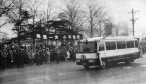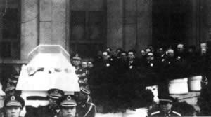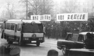 江泽民、李鹏等党和国家领导人护送邓小平同志遗体去八宝山火化